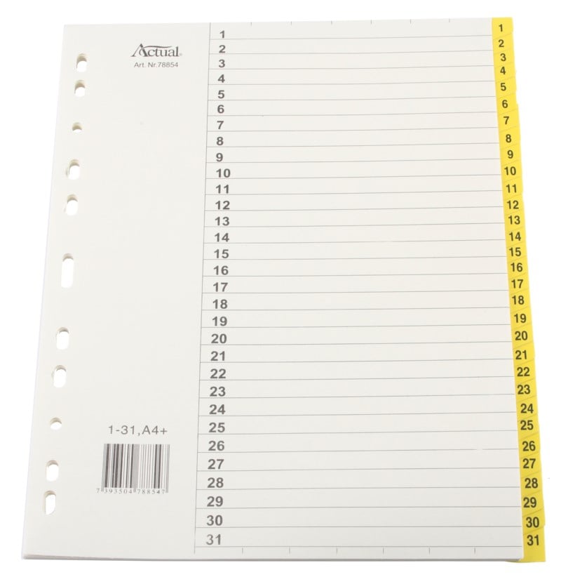 Systemregistren är extra breda och passar därför utmärkt tillsammans med plastfickor. Registren är tillverkade av FSC-certifierat papper. Index 1-31.