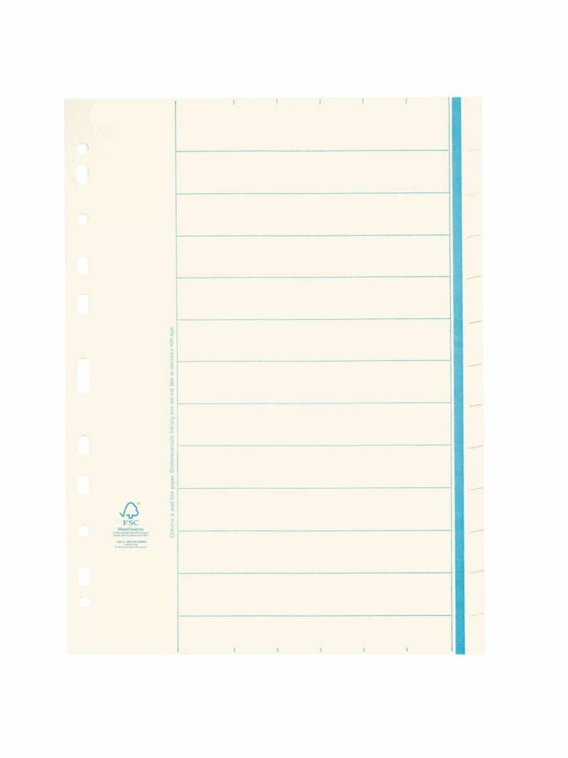 Systemregistren är extra breda och passar därför utmärkt tillsammans med plastfickor. Tillverkas av av 110 g miljövänligt papper som är klorfritt, syrafritt och åldersstabilt. Förstärkta flikar i grå plast. Multihålade och påsförpackade. Index 1-20.