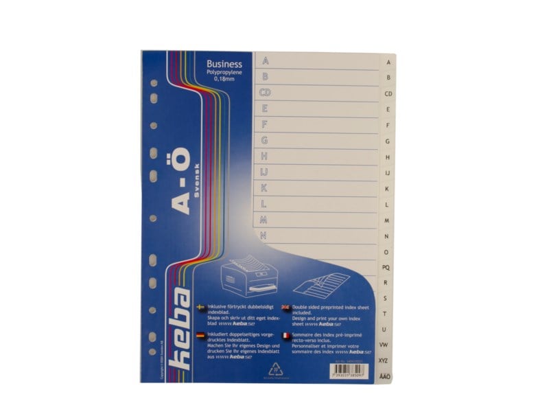 Plastregister i A4-format av mycket hög kvalitet. Helt transparent för ett stilrent och modernt intryck. Indexbladet är vändbart med extra mycket plats för text. Index A-Ö.