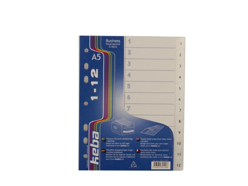 Plastregister i A5 format av mycket hög kvalitet. Helt transparent för ett stilrent och modernt intryck. Indexbladet är vändbart med extra mycket plats för text. Index 1-12.