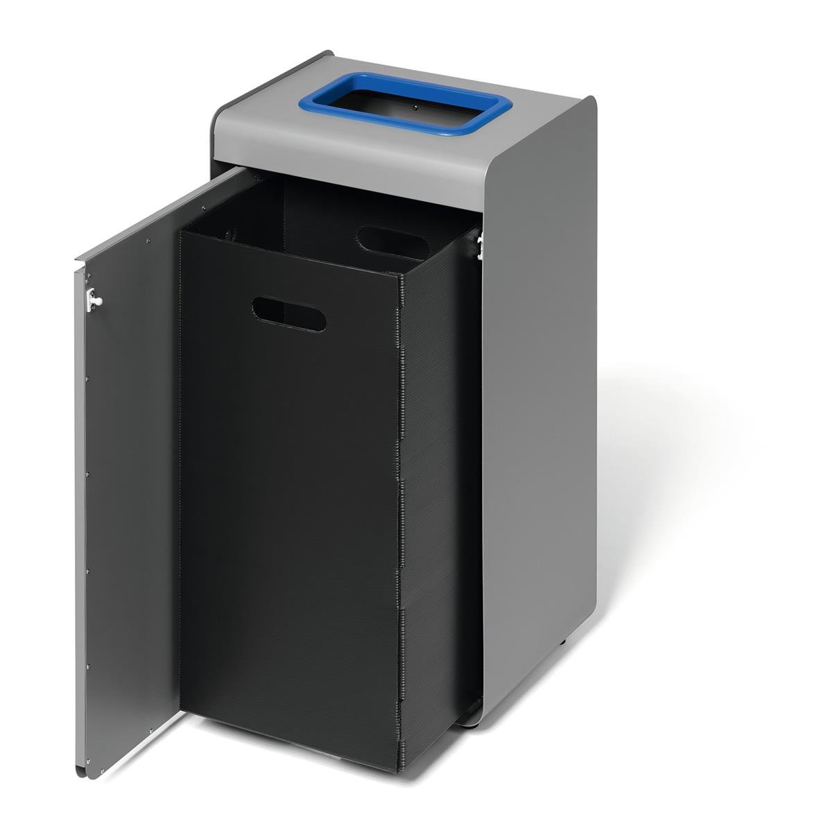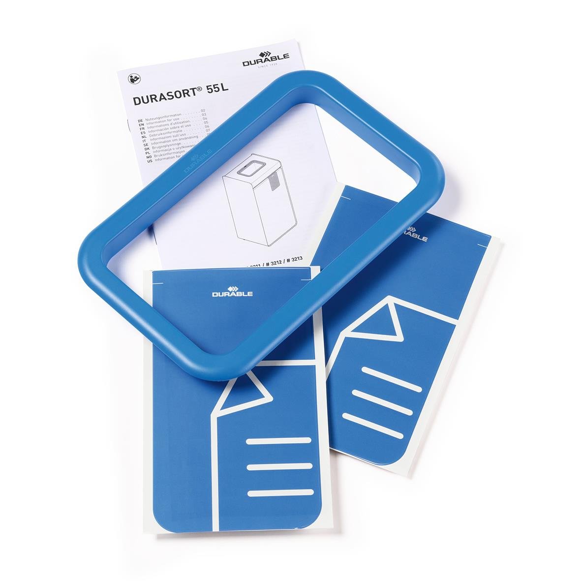 Genom att sortera avfall kan mycket material återvinnas, på så vis sparar vi energi och naturresurser. DURASORT 55L "papper" är ett sopsorteringskärl som underlättar avfallssorteringen tack vare en blå ram runt inkastets öppning. Två blå klistermärken med