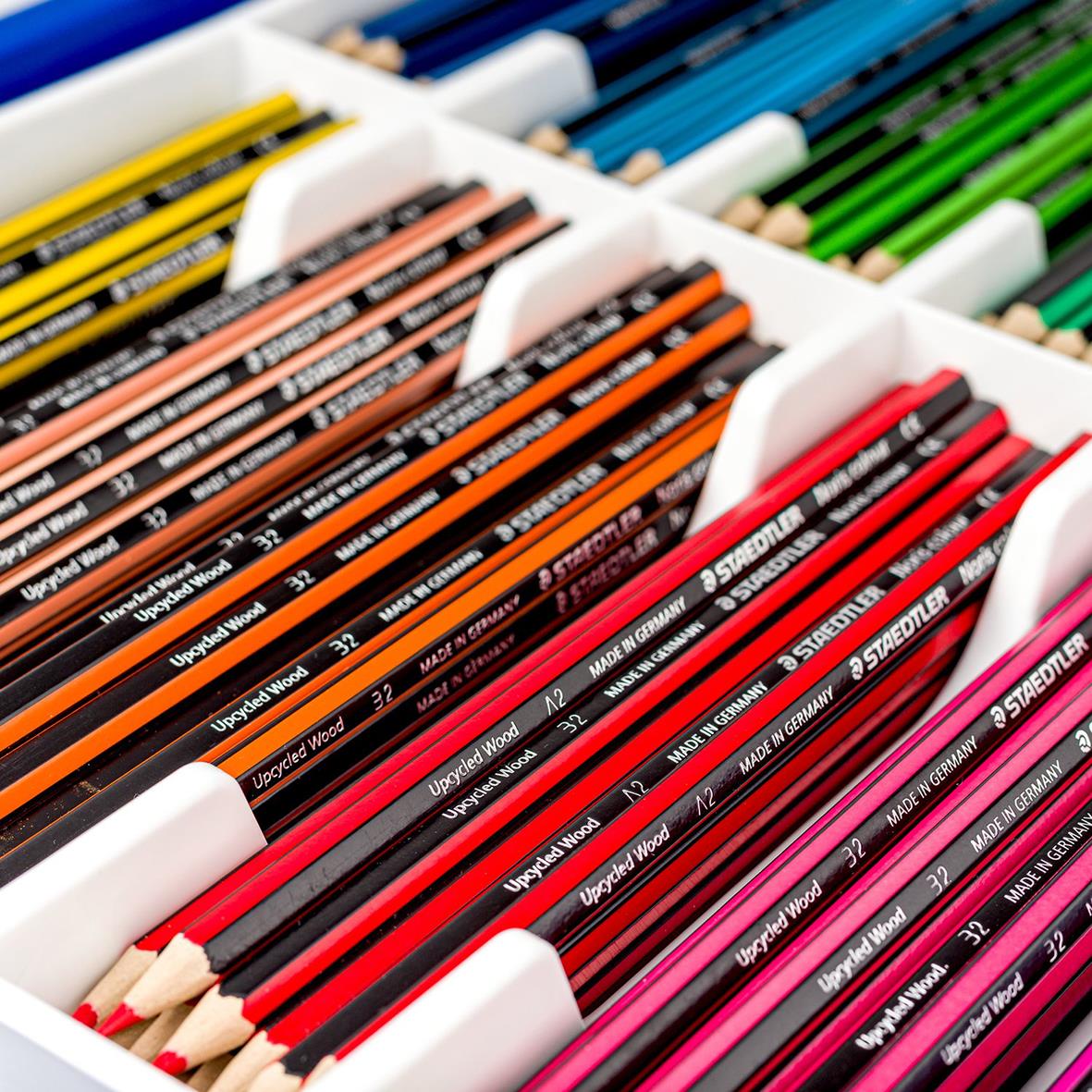 Färgpenna Blyerts Staedtler Noris 185 12 färger. Gratnell-låda med 288 med Miljövänliga färgpennor i storpack – perfekt för klassrummet och kreativt skapande. Produktbeskrivning: • Innehåller 288 färgpennor i 12 blandade färger samt 6 metallvässare. • Sex