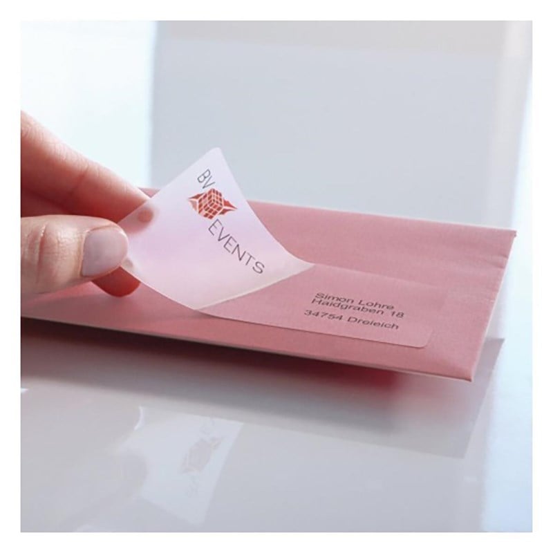 Transparenta QuickPEEL™-etiketter blir nästan osynliga när man fäster dem. De får texten att framstå knivskarpt och QuickPEEL™-funktionen gör det lättare att avlägsna dem från arket. Designa och skriv ut med Averys GRATIS onlineprogram, som du hittar på w