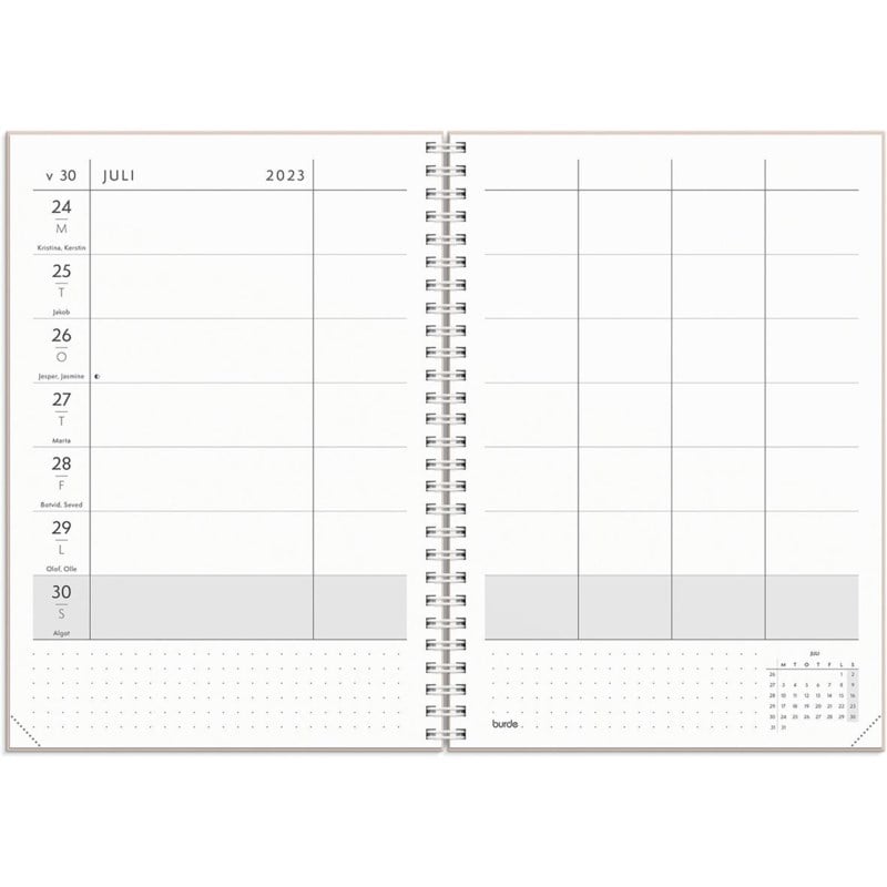 Almanacka Burde 1050 Planera mera 2026 A5. Behöver du hålla koll på fler än dig själv eller kanske olika projekt? Då är veckoplaneraren Plan more den perfekta hjälpredan. I den här kalendern finns 5 extra kolumner för varje dag och du kan smidigt få en öv