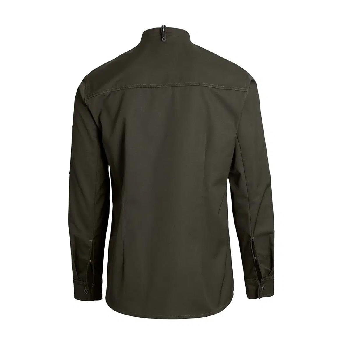 Kock-/Servicejacka Kentaur 23515 Unisex Cypres Olive 3XL. - Our Choice - Återvunnen polyester från PET-flaskor - Modern fit - optimal passform - Hank i nacken för bröstförkläde - Invändig rem i Pull-Up cuff som gör ärmlängden justerbar - Ärmar som inte l
