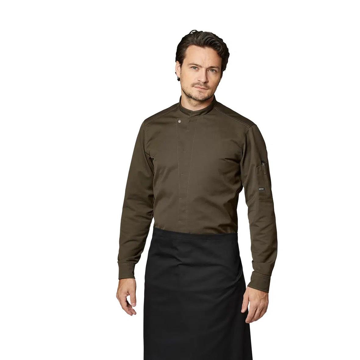 Kock-/Servicejacka Kentaur 23515 Unisex Cypres Olive 4XL. - Our Choice - Återvunnen polyester från PET-flaskor - Modern fit - optimal passform - Hank i nacken för bröstförkläde - Invändig rem i Pull-Up cuff som gör ärmlängden justerbar - Ärmar som inte l