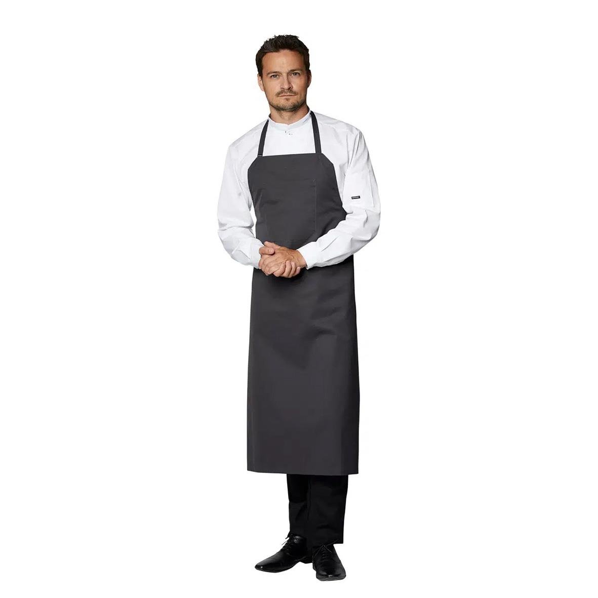 Bröstlappsförkläde Kentaur 31502 Charcoal. - Invändig bröstficka - Ficka int. mål: H: 20 cm x B: 16,5 cm - Justerbart nackband med knapp och knapphål - Knappar som är lämpliga till upprullning - Sydda band - Steamerhenk - B: 90 cm x H: 108 cm 245 g/m2