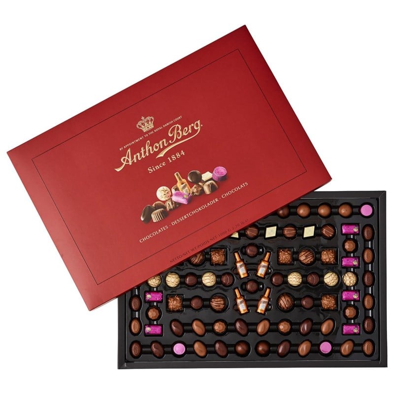Anthon Berg Diplomat är en extra stor och lyxig chokladask som är fylld med 17 noga utvalda praliner, där både smak, färg och fyllningar varierar på ett smakfullt sätt. Anthon Berg Diplomat är verkligen lyxig och är en bjässe med sina 60 x 40 cm och hela
