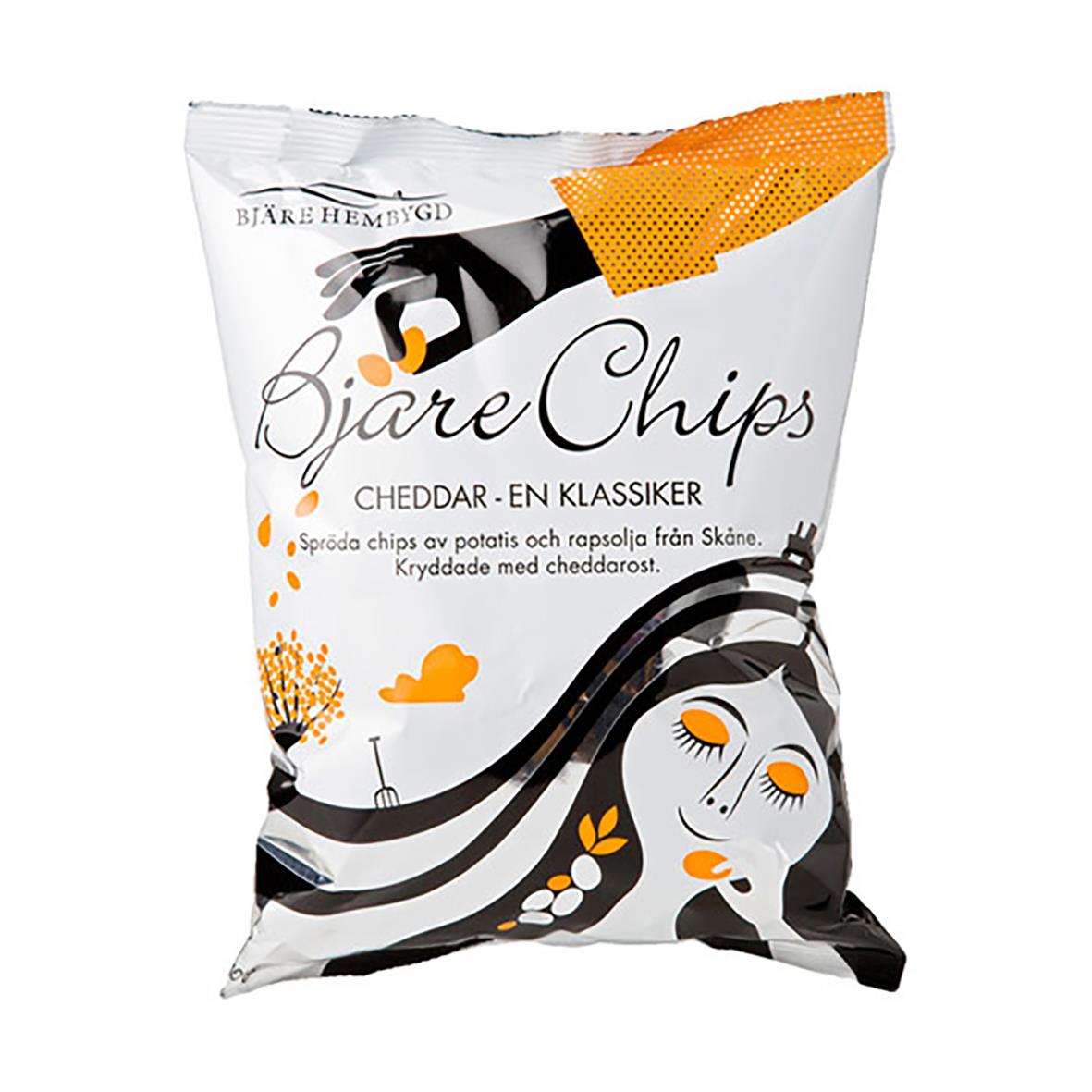 Chips från Bjärehalvön i Skåne i snackstorlek. Smak: Cheddar.
