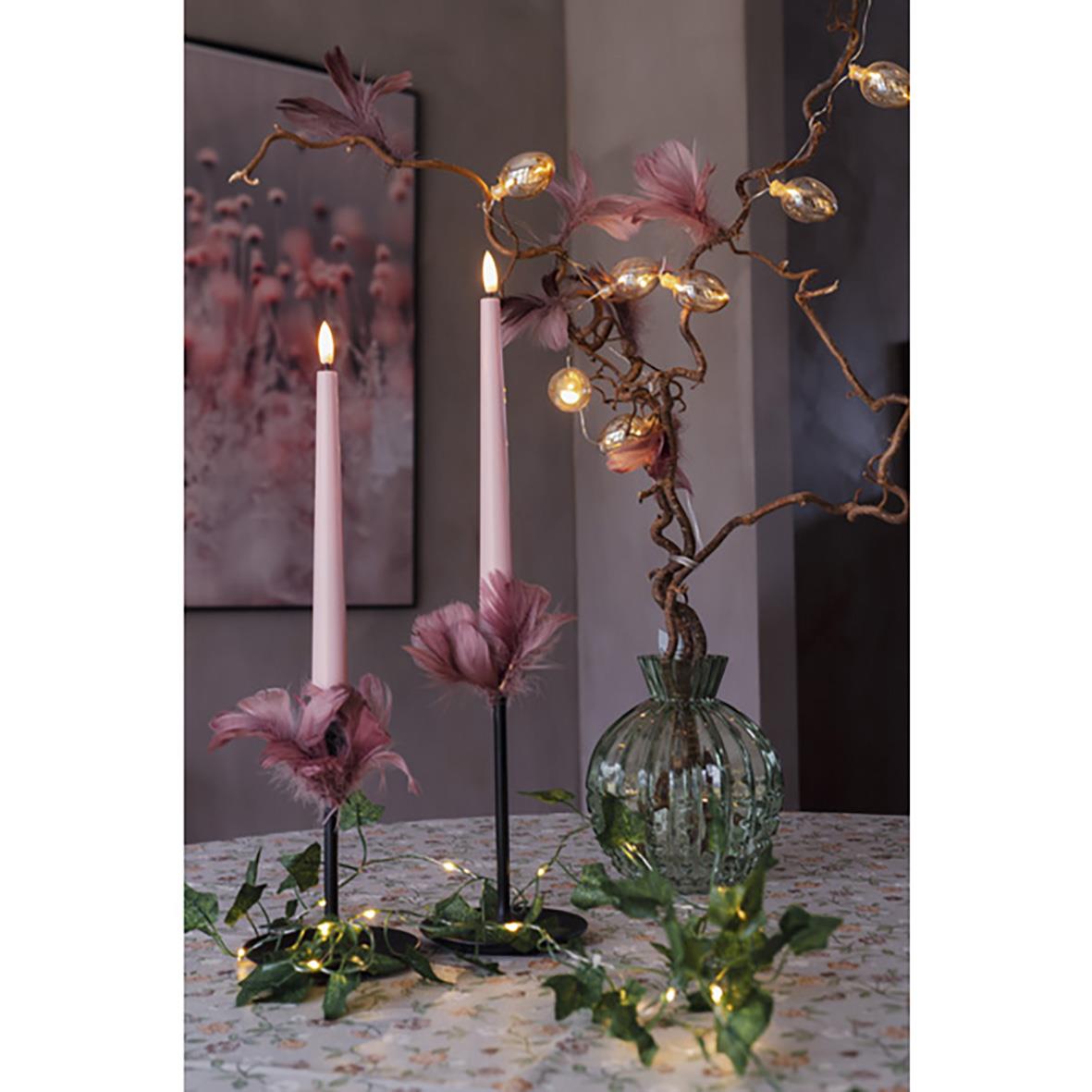 Antikljus Flamme Candy 2-pack Rosa Pastellfärg. Batteriljus Flamme Candy i en rosa pastellfärg. Gjorda i plast med en brinntid på 400h. Den lyser med varmvitt sken. Inbyggd timer 6h/18h. Drivs av 2x2 AA batterier. Höjd 26 cm.