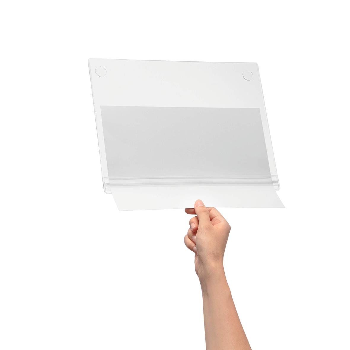 Vattentålig*, stadig plastficka med vattenresistent tryckförslutning som skyddar inlagan från regn, fukt, vattenstänk och smuts i t ex poolområden, bastuanläggningar, gör-det-själv-hallar och trädgårdsbutiker. UV-resistent, tål temperaturer från -20°C til