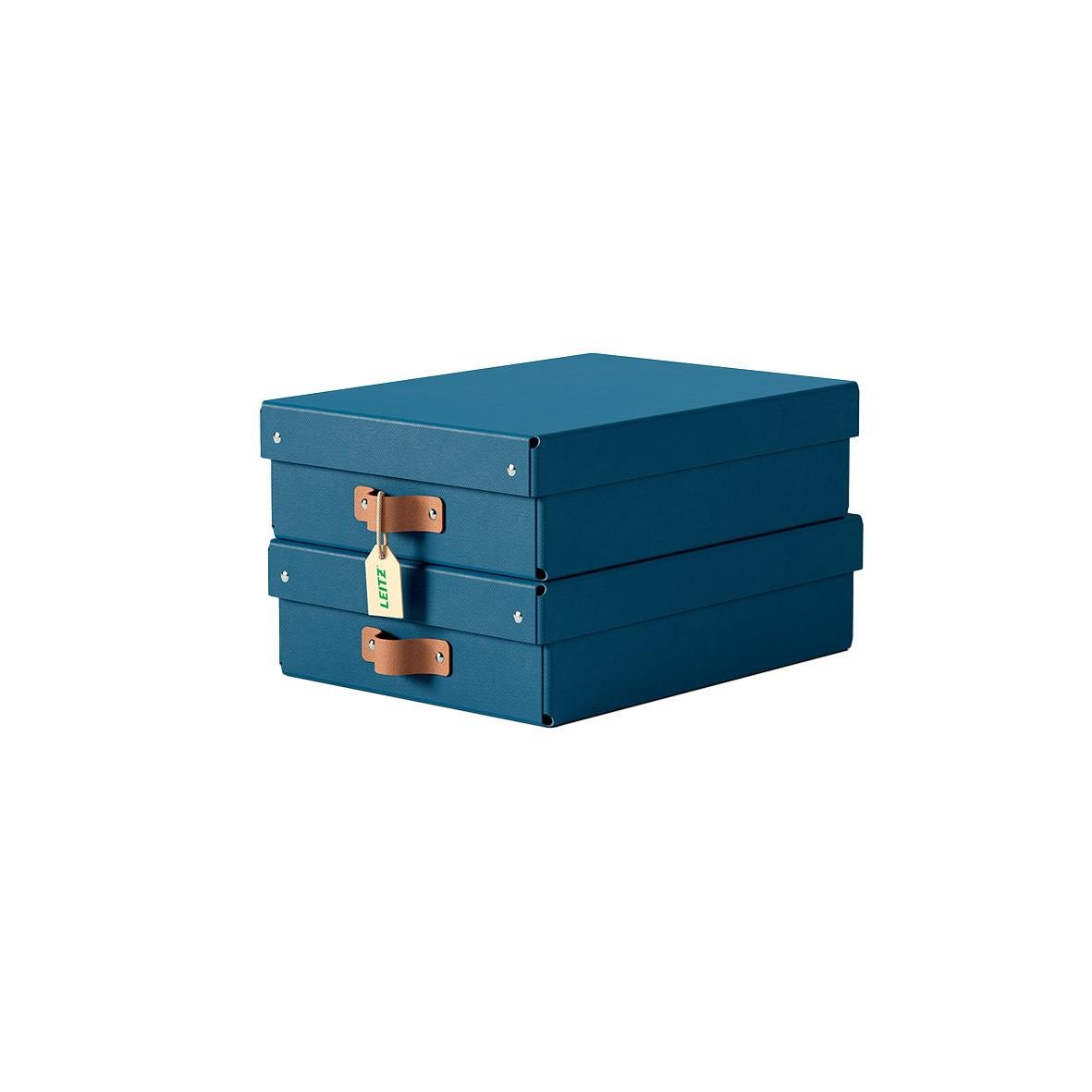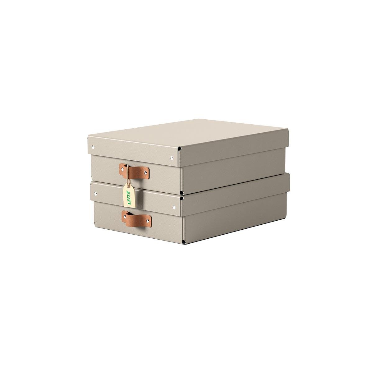 Set med två förvaringslådor i svart med låg höjd och lock tillverkade av 100% återvunnen FSC-certifierad kartong i en modern och stilren design som passar både hem och kontor. Mångsidig förvaring med en kapacitet på 8 liter, perfekt för A4-dokument, 14-tu