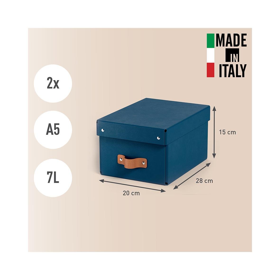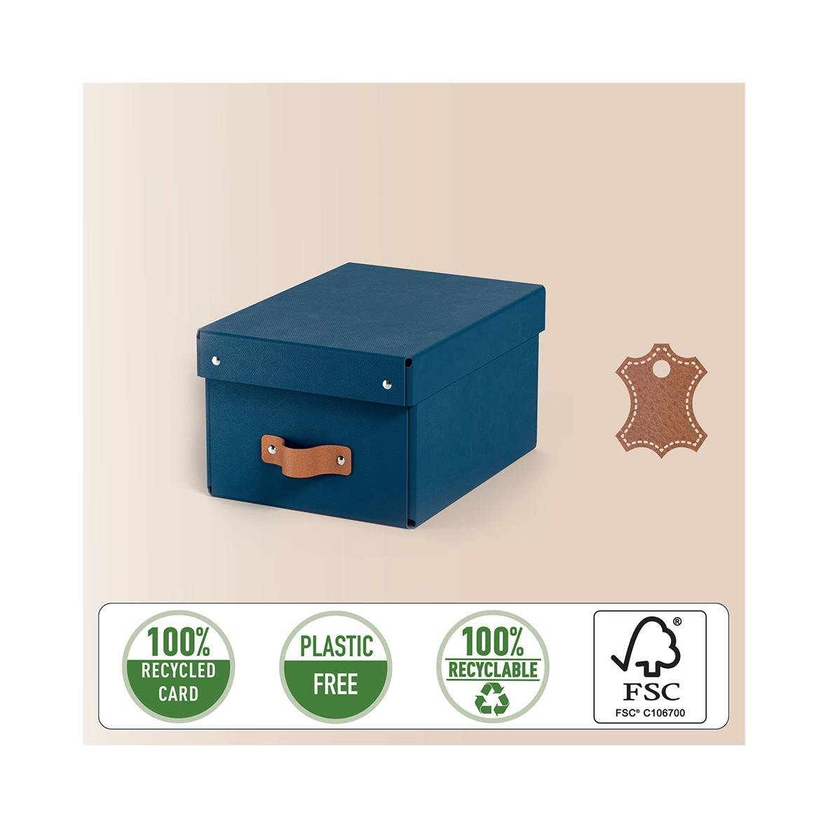 Set med två små förvaringslådor i blått, med lock tillverkade av 100% återvunnen FSC-certifierad kartong i en modern och stilren design som passar perfekt för ditt hem och kontor. Mångsidig förvaring med en kapacitet på 7 liter, perfekt för att organisera
