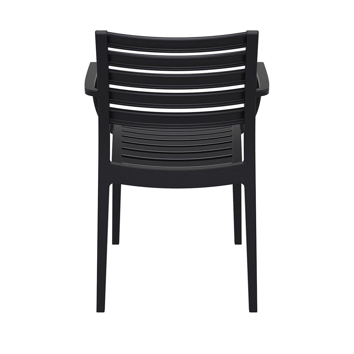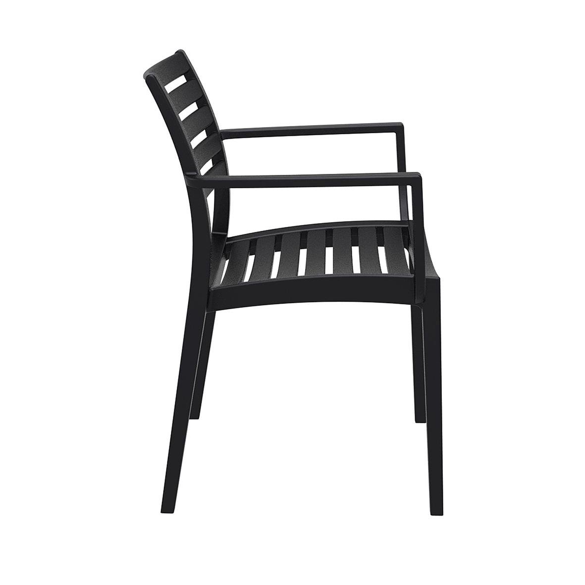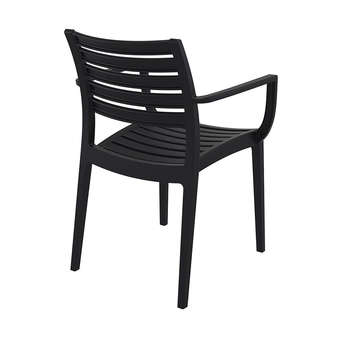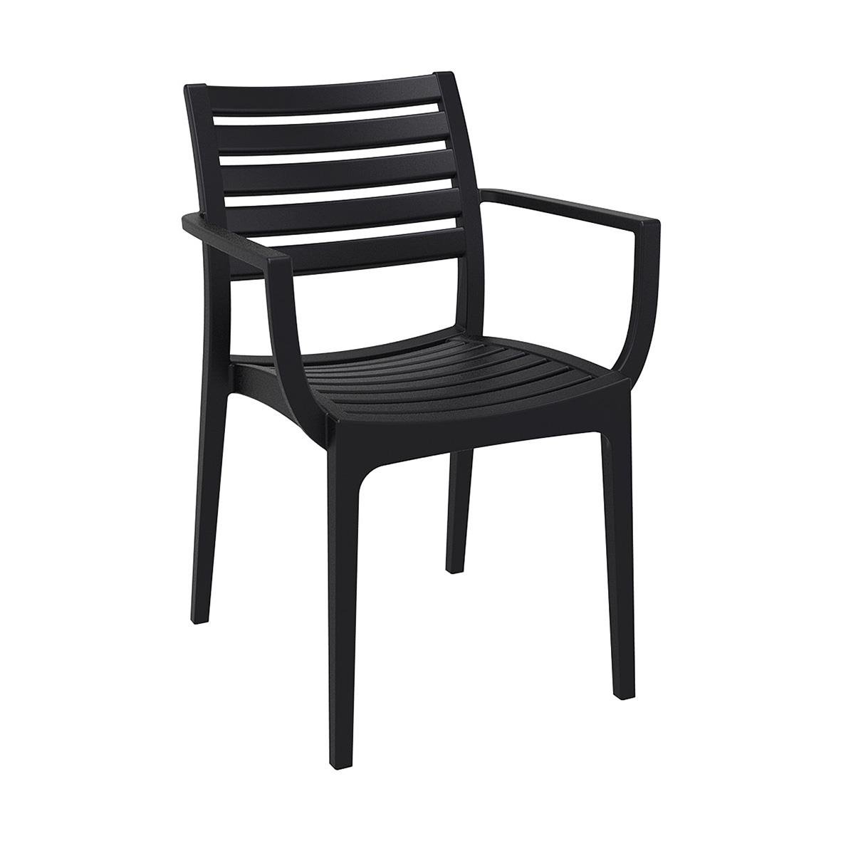 Stol Artemis Stapelbar med Armstöd Svart kombinerar modern och klassisk design i en stapelbar stol med armstöd, framtagen för både inomhus- och utomhusbruk. Målet med stolen var att skapa en högkvalitativ och lättmöblerad stol som fungerar i de flesta mil