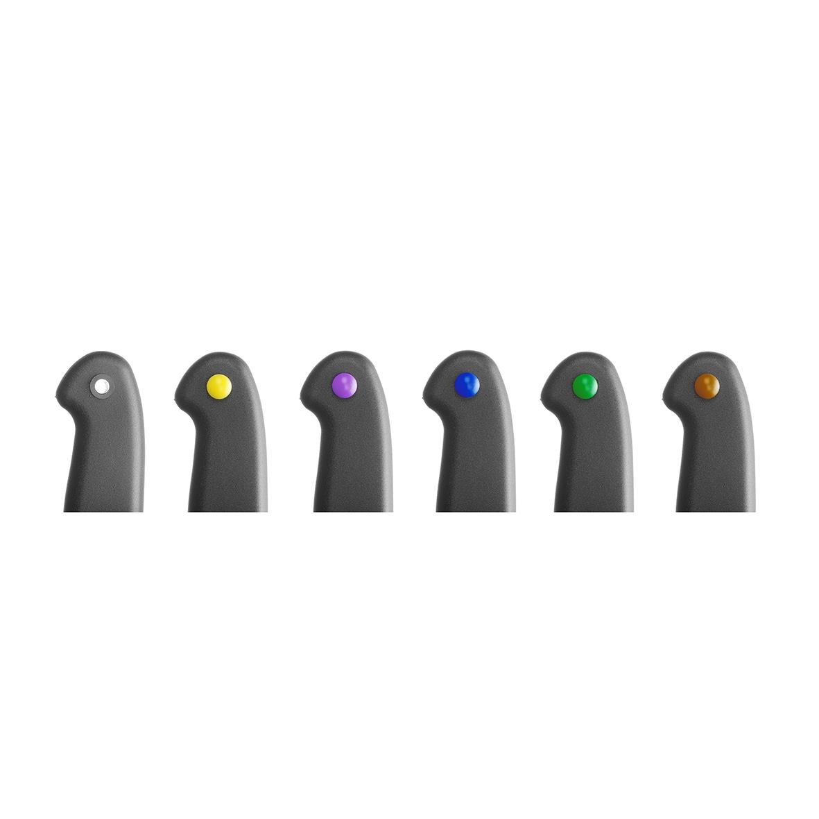 Pizzadelare Hendi. Kniv med blad i rostfritt stål och handtag i polypropylen. Utrustad med HACCP-färgkodningssystem – färgclipset låses fast och kan inte tas bort efter montering. Mått: Ø100 × 230 mm