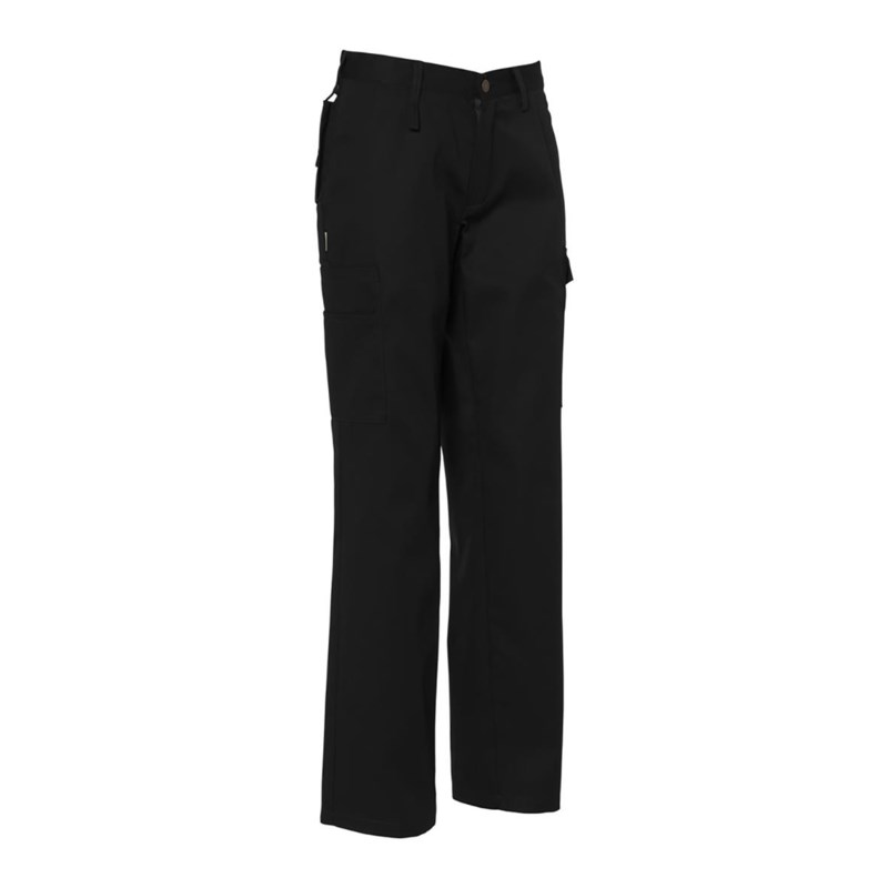 Kockbyxa Segers 8602 Dam Svart 44. Chinosbyxa i workermodell. Slät front. Linning med 7 stycken hällor. Snedställda fickor. Insydd bakficka höger sida. Telefonficka vid linning höger sida. Benficka med lock på vänster sida. Ben och pennficka på höger sid