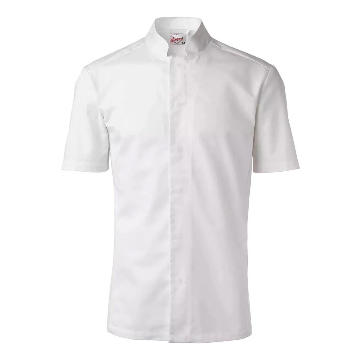 Kockskjorta Segers 1053 Kort Ärm Herr Vit C66. Modern kockrock med kort ärm i något smalare passform till herr. Storlekar C146-154 har ca 5 cm längre ärm och bål. - Dold knäppning med tryckknappar - Hank i nacken - Slitstark och färghärdig kvalitet - Se