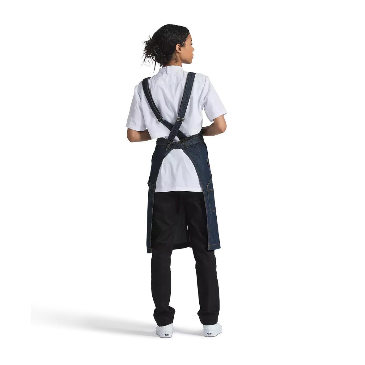 Snickarförkläde Segers 4092 72x98 Mörkblå one size. Bröstlappsförkläde i snickarbyxstil. Lite kraftigare bröstlappsförkläde med många användbara fickor och detaljer. Slitstarkt tyg och markerade stickningar. Slits fram för bra passform. Kors i ryggen ge