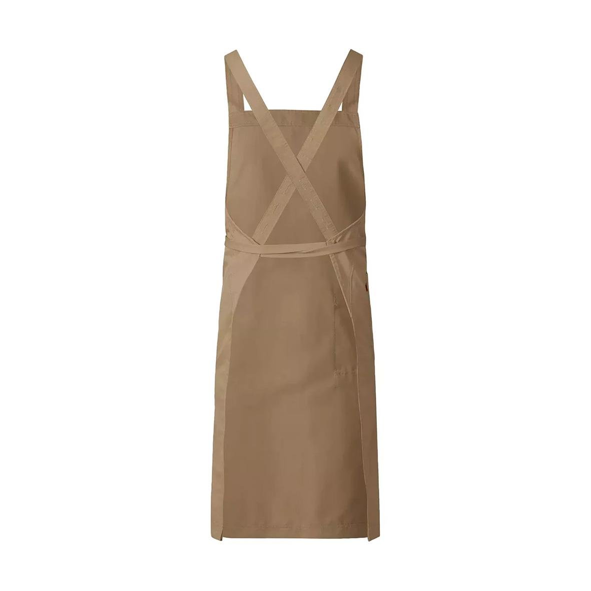 Bröstlappsförkläde Segers 4577 Support 70x100 Khaki. Bröstlappsförkläde med ergonomi i fokus tack vare kors i ryggen med reglerbara hängslen. Produkten ingår i vår Segers Green kollektion. - Miljöbättre tyg - Sidficka med nyckelhälla - Tvättbar i 85°C