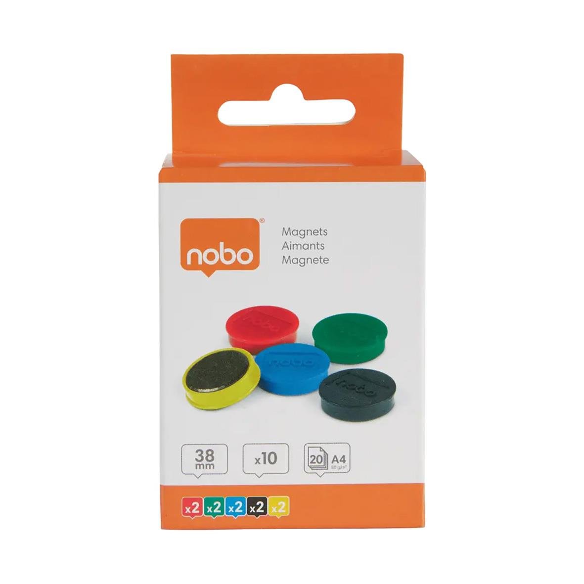 Magnet Nobo 38 mm Sort.färg. Runda magneter är det perfekta verktyget för brainstorming-sessioner, när man vill visa och visualisera idéer på magnetiska whiteboards och glastavlor. De passar även utmärkt att använda som kylskåpsmagneter för att fästa påmi