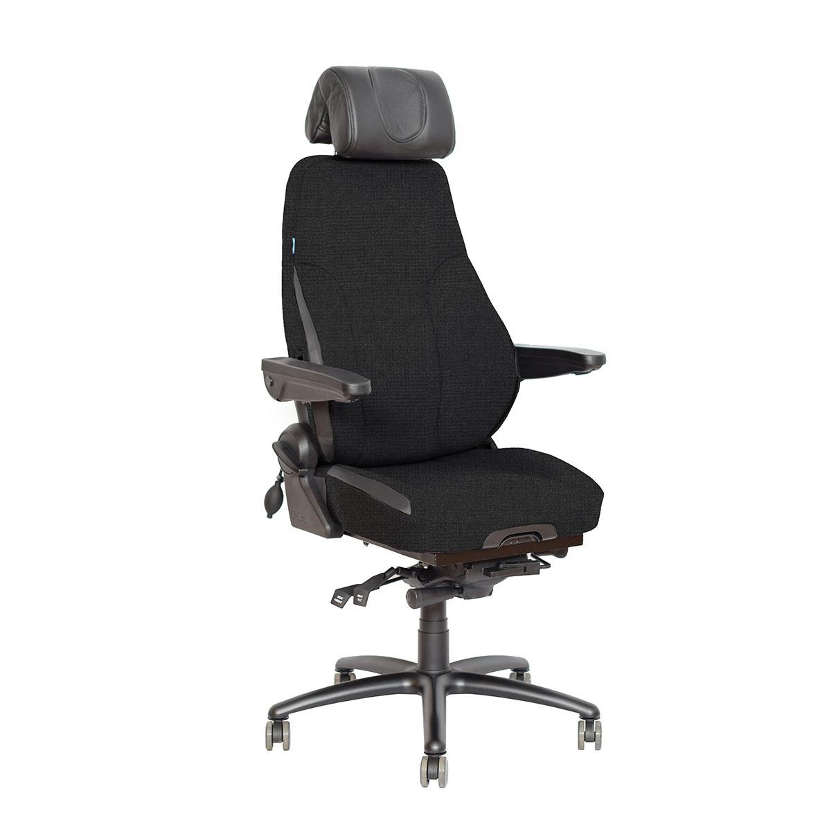 Kontorsstol Be-Ge Frapett 300 24H Tyg Svart. Den ultimata operatörsstolen för dygnet-runt-miljöer. Byggd på Be-Ge:s långa tradition av förarstolar för tung trafik – nu med samma robusta kvalitet i kontrollrummet. Stolen är komplett med armstöd och nackstö