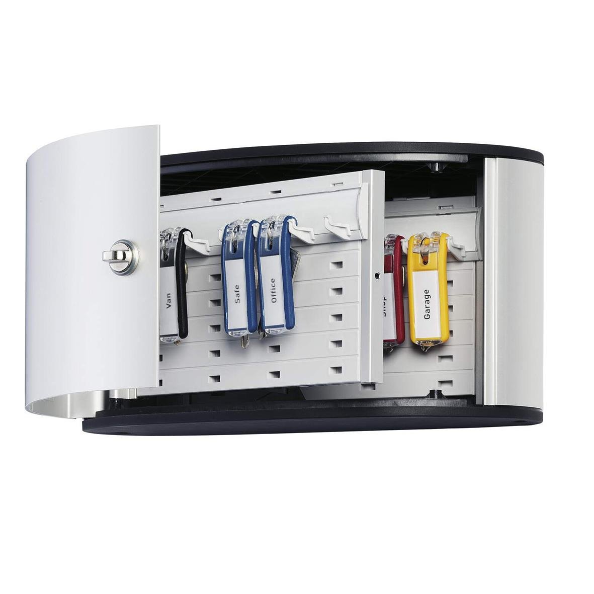 Med ett nyckelskåp finns det en naturlig plats att samla och förvara nycklarna, vilket skapar bättre ordning och säkerhet. Durables designserie KEY BOX med olika nyckelskåp är tillverkade av aluminium med en överskådlig innehållsförteckning på insidan av