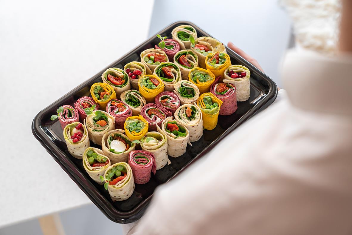 Uppläggningsfat rPet Svart 35x24x2 cm. Snyggt och praktiskt uppläggningsfat som passar perfekt för catering och uppläggningar av en mängd olika produkter. • Godkänt för kontakt med livsmedel • Temp -20 till + 70°C • Microvågsugnsäker: Nej