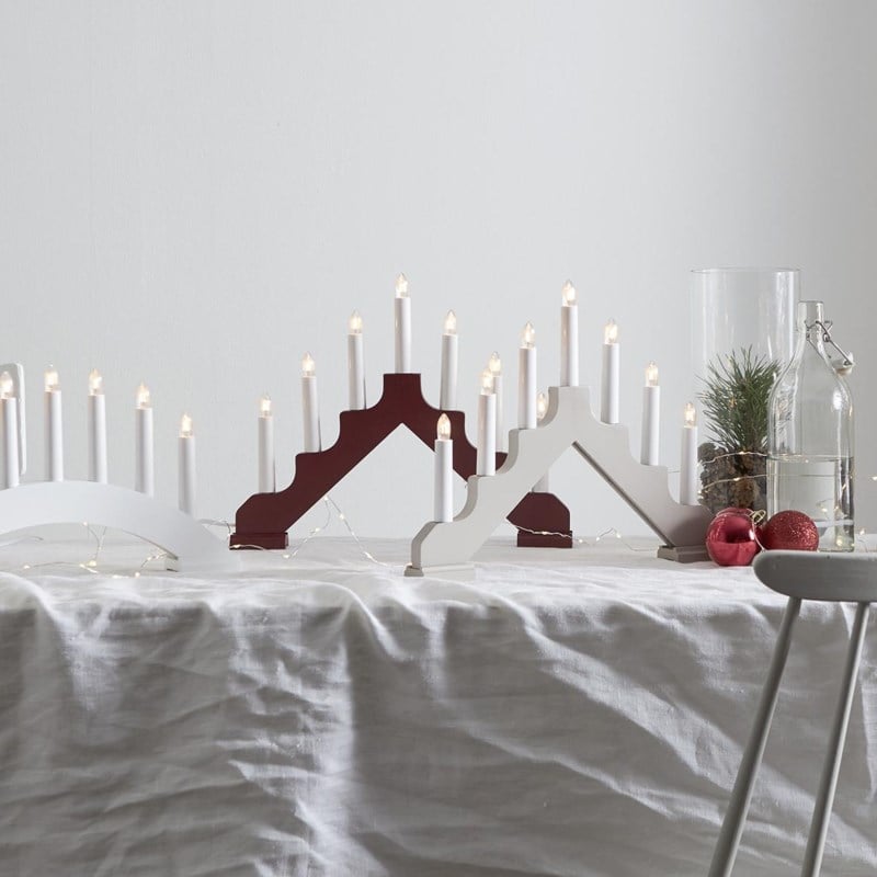 Vit klassisk träljusstake med 7 ljuskällor. Skapar en mysig adventskänsla i med härligt sken. 1,8 m sladd. Bredd: 37,5 cm, höjd: 30 cm.
