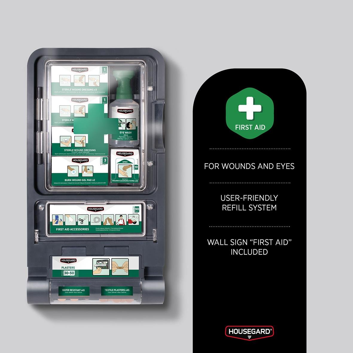 Första hjälpen-station för sårvård och ögonskölj som samlar utrustning för första insats i arbetsmiljöer där det krävs ordning och överblick. Stationen är anpassad för verksamheter där regelbunden kontroll och påfyllning ingår i det systematiska arbetsmil
