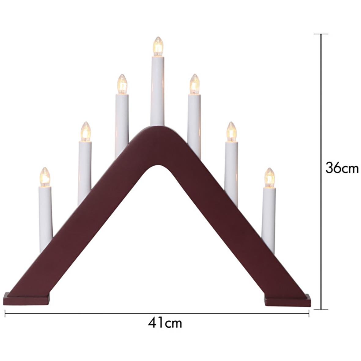 Adventsljusstake tillverkad i trä, målad i röd färg. Klassisk ljusbild för att skapa den perfekta julstämningen i fönster eller på en skänk. 1,8 m sladd. Bredd: 41 cm, höjd: 36 cm.