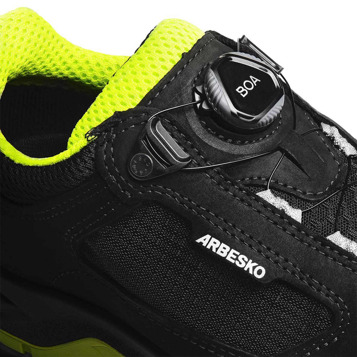 Skyddssko Arbesko 935 Umeå Stl 46. Umeå 935 är en extra luftig skyddssko i vattenavvisande skinn och nätdetaljer på sidorna för optimal luftgenomströmning. Skyddsskon är ESD-godkänd och utrustad med BOA® Fit System för snabb, enkel och exakt passform. De