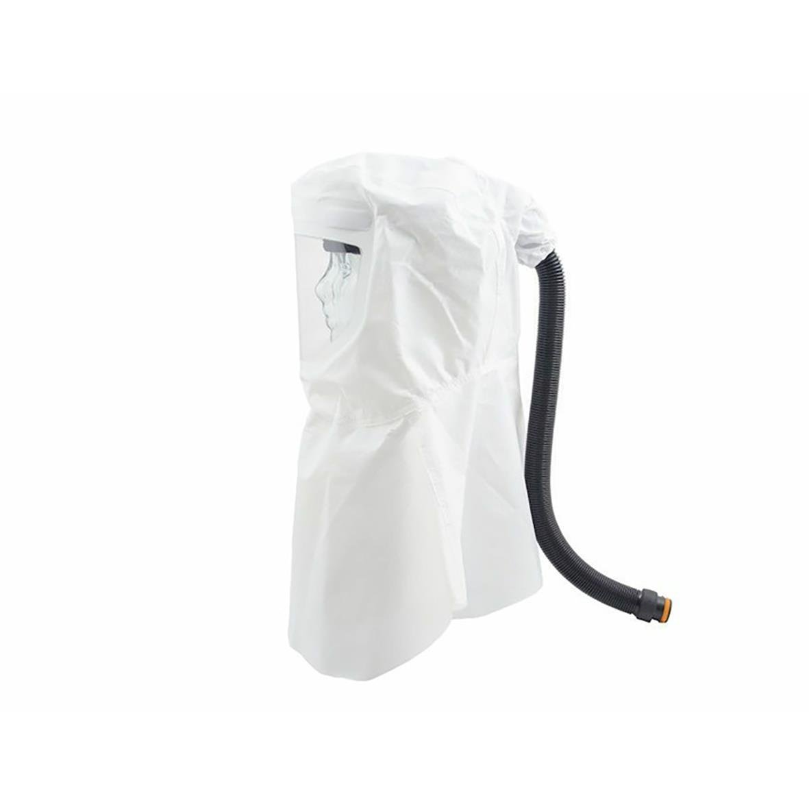 Huva Sundström SR 561. Huvan ingår tillsammans med den batteridrivna fläkten SR 500, SR 500 EX eller SR 700 och godkända filter i Sundströms fläktassisterade andningsskyddssystem. Huvans andningsslang ansluts till den filterförsedda fläkten. Övertrycket