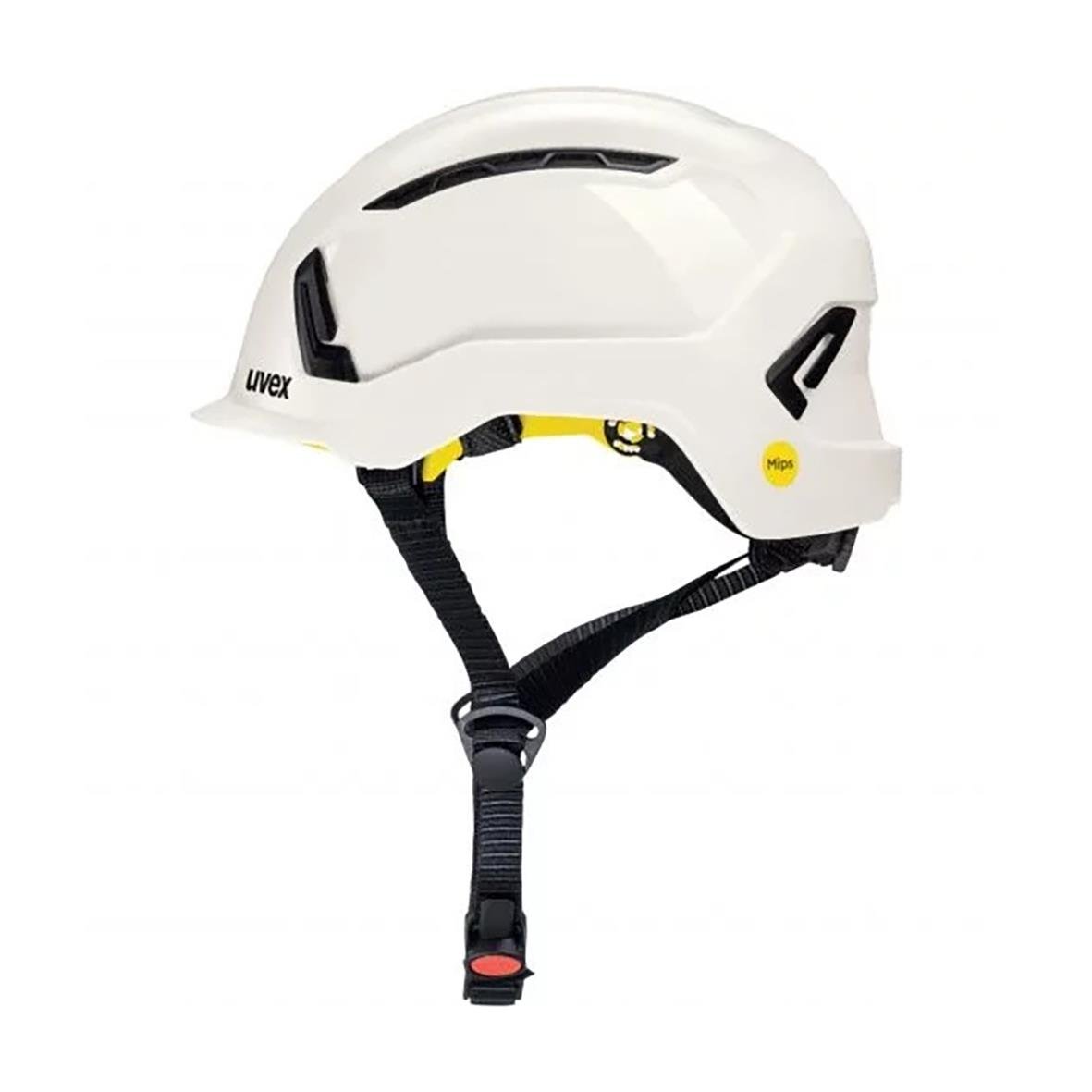 Skyddshjälm uvex pronamic alpine varselorange är certifierad både som industrihjälm (EN 397) och klätterhjälm (EN 12492). Hakband för både EN 12492 och EN 397 ingår, Yttre ventilerat ABS-skal och inre skal tillverkat av EPS.
