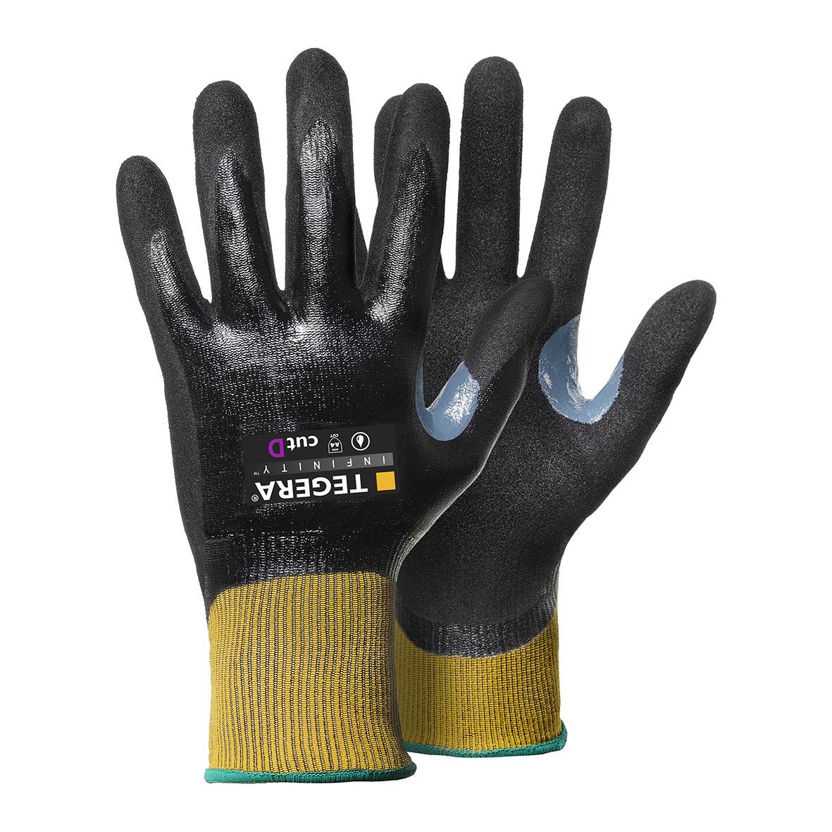 Skärskyddshandske Tegera 8812 Infinity 11. Smidig skärskyddhandske (D) lämplig för monteringsarbete. Ultralätt tack vare 15 gg stickning och CRF® skärskyddsteknologi. Heldoppad med mycket mjukt nitrilskum och belagd handflata för bästa grepp i feta och o