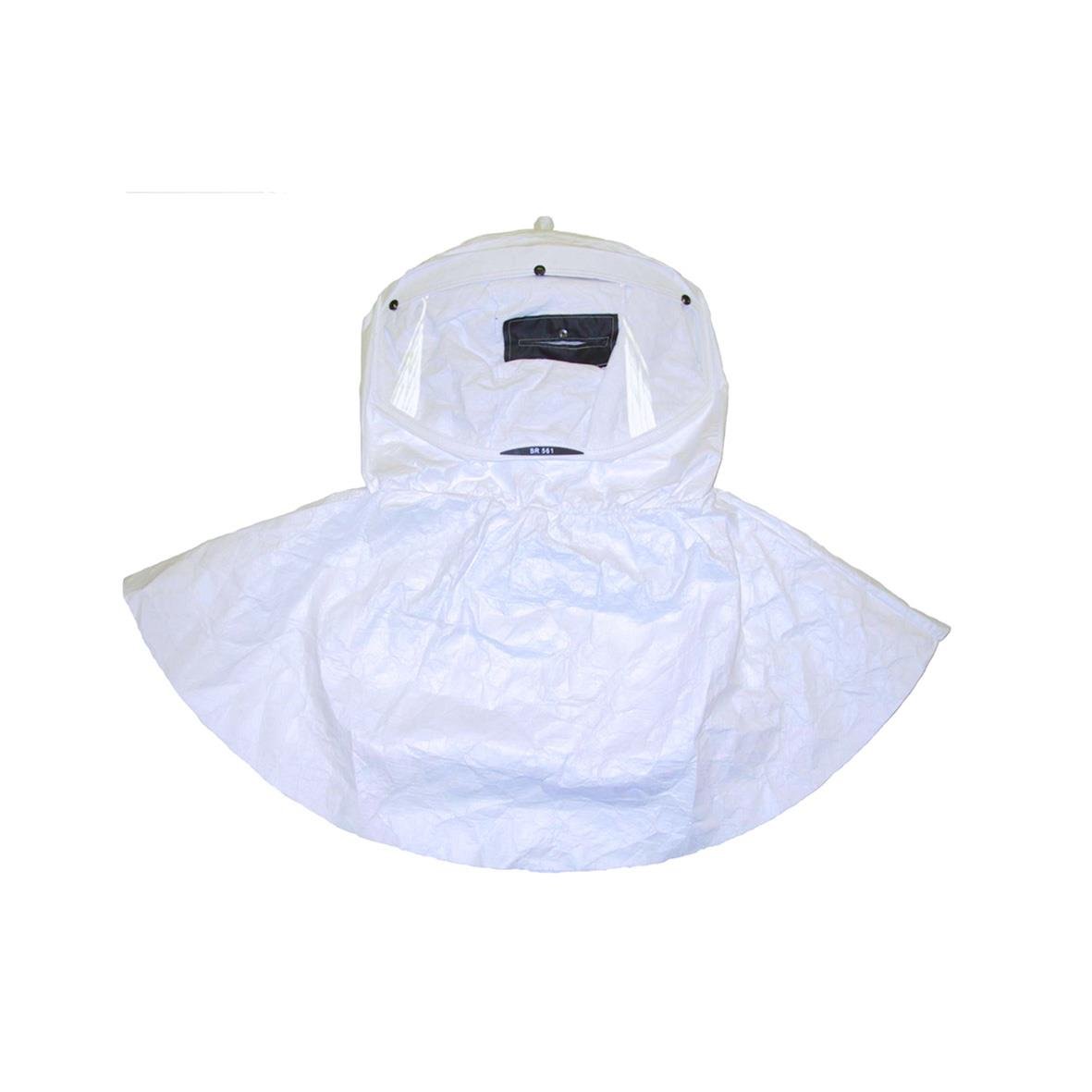 Utbytbar huva i Tyvek. Huvudställning ingår ej. En mycket lätt huva som skyddar huvudet och skuldrorna. Siktskiva i PETG. Endast i en storlek.