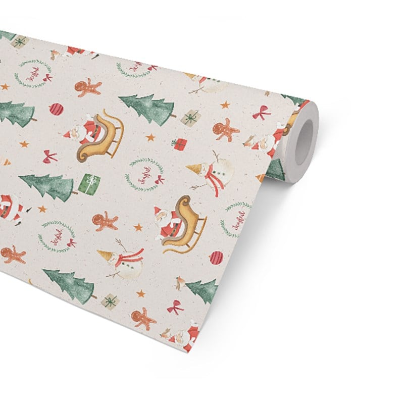 Julpapper Joyful 57cm x 154 meter. Obestruket papper, 80g FSC-märkt
