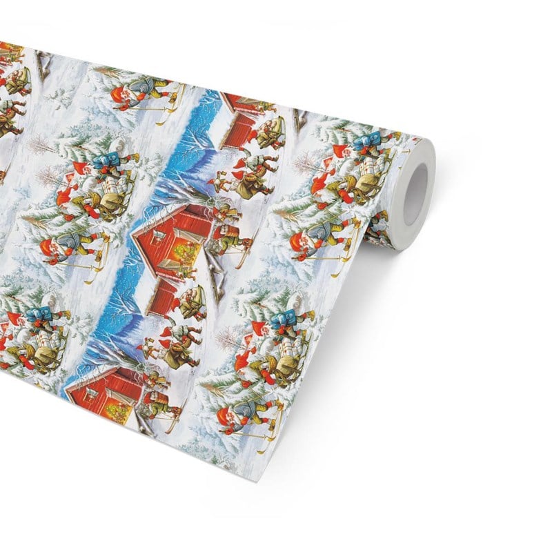 Julpapper Tomtebestyr 57cm x154m 7kg. Matt bestruket papper, 80g, FSC-märkt.