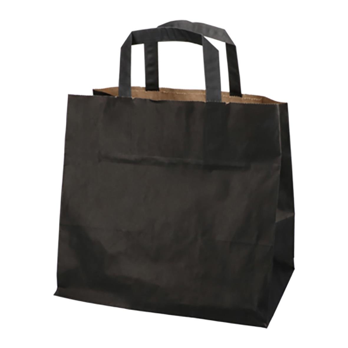 Take awaypåsar av brun kraft med platta handtag. Kassen är utmärkt för hämtmat inom fastfood, café och restaurang.