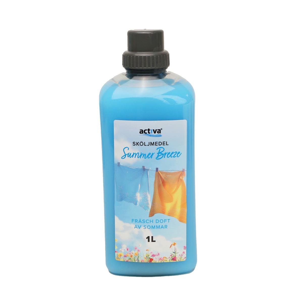 Sköljmedel Activa Summer Breeze 1 L. Ge tvätten en härligt fräsch känsla av sommar! Activa Summer Breeze 1L är ett effektivt sköljmedel som inte bara sprider en underbar sommardoft, utan också gör dina textilier mjuka och mycket lättare att stryka. Perfek